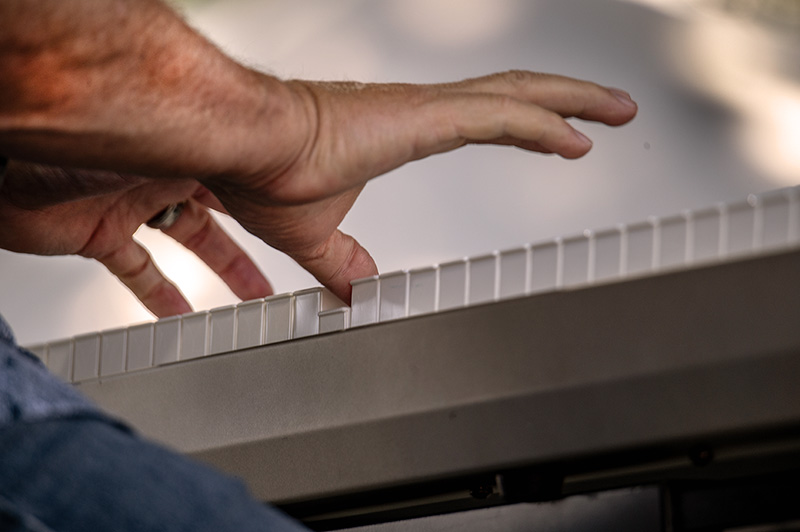 Jeff accompanies his keyboard with harmonica for a few numbers, despite his wife’s admonition that he is not known as a multi-tasker.